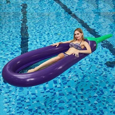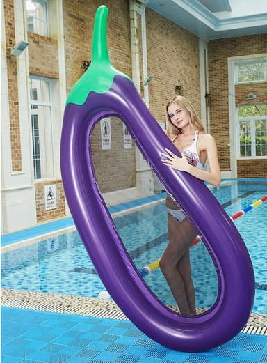 Uppblåsbar badleksak i form av en Aubergine. Mitten av badleksaken består av ett nät så att du samtidigt svalkas av vattnet.