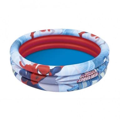 Barnpool perfekt för sommaren. Svalka ner er och njut av vattenlekar i den varma solen. Denna barnpool är lätt att blåsa upp och gör sig bra på gräsmattan, terrassen eller balkongen. Den består av tre sammankopplade luftkammare, var och en med en säkerhetsventil. Tåliga och mjuka poolväggar är tillverkade av slitstark vinyl med ett Spider man-motiv. Produkten är avsedd för barn över två år.