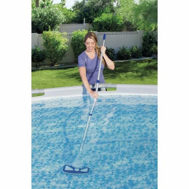 Detta set innehåller en dammsugare som ansluts till filterpumpen och ett uppsamlingsnät för flytande föremål på poolens yta.SPECIFIKATIONER & EGENSKAPER: