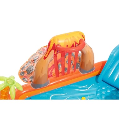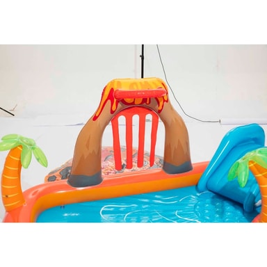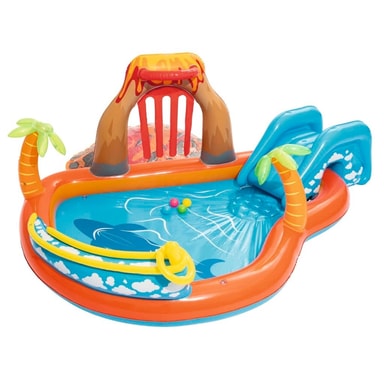Så ge din familj det ultimata sommaräventyret med Bestway Lava Lagoon lekcenter! Med starka säkerhetsventiler och förtestad vinyl är det en säker och hållbar lösning för utomhuslek. I leveransen ingår allt du behöver för en fantastisk sommarlek - en uppblåsbar pool med palmer och bollkana, en rutschkana, en lavatunnel med basketring, en uppblåsbar ring och fyra bollar.