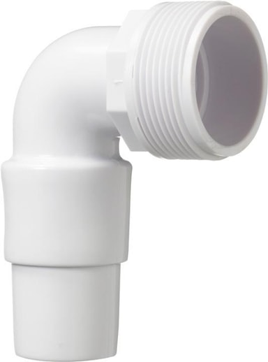 BÖJD SLANGSTUSSBöjd slangstuss i vit plast med 1 1/2"" utvändig gänga till Ø32 och Ø38 mm slangSlangstuss till montering i sandfilterpump, skimmer och multiportventil. Passar till Ø32 och Ø38 mm slang.Läs mer om produkten