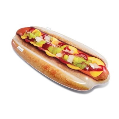 Den här uppblåsbara jätte hot dog är perfekt till att ta med i poolen, när solen står högt och du ska kyla ner. Den är tryckt i ett realistiskt mönster, så var försiktig så du inte blir för sugen på korv. Hot dog flytaren ger glädje till alla storlekar i familjen – stora som små.