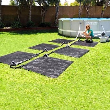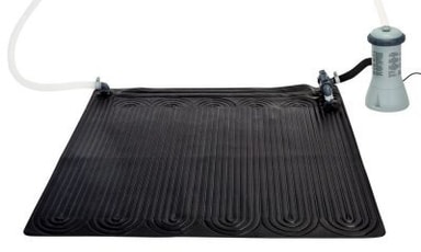Den miljövänliga poolvärmaren! Den här INTEX-solvärmemattan höjer temperaturen i poolvattnet med upp till 5°C. Det är bara att montera den och låta solen göra resten. Passar till INTEX-pooler upp till 30.280L. Kompatibel med filterpumpar som pumpar mindre än 7.570L/h. Mått på mattan 120x120cm.