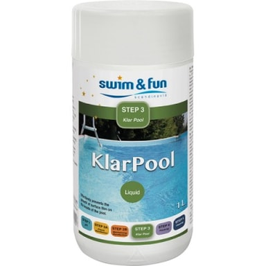KlarPool förebygger att poolen blir hal och får beläggningar på botten och sidorna. Förebyggande dosering veckovis:0,5 dl. KlarPool pr. 10.000 liter vatten.