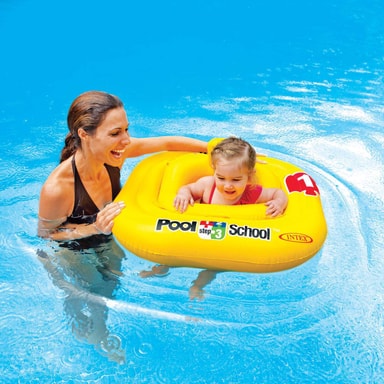 Med denna uppblåsbara stol kan även de minsta vara med i vattnet på ett säkert och bekvämt sätt