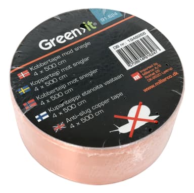 Självhäftande koppartejp Stoppar sniglar och skyddar växter och grönsaker på ett miljövänligt sätt När snigelns slem kommer i kontakt med koppartejpen får snigeln en liten ofarlig stöt så att den byter riktning Mått: 4×500 cmLäs mer om produkten