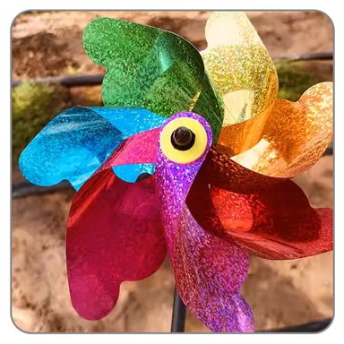 Dessa reflekterande vindsnurror fungerar som fågelskrämmor. D kan enkelt stickas ner i jorden för att sedan snurra i vinden och reflektera solljuset samt skrämma bort fåglar. De är samtidigt en fin dekoration för din trädgård.