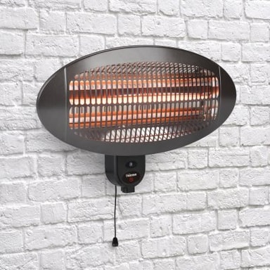 Denna väggmonterbara värmare för uteplatsen kan ställas in efter allas behov med dess tre olika positioner. Genom dess säkerhetsklassning IPX4 är den skyddad mot skvättande vatten.