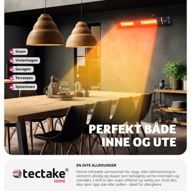 När temperaturen sjunker är infravärmaren Solaris Horizon från tectake precis det du behöver för att hålla din utomhusyta mysig och varm. Denna högkvalitativa värmare är inte bara ett mästerverk av effektivitet, utan också en riktig blickfångare för varje trädgård eller terrass.