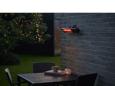 Med den här terrassvärmaren blir det enklare att förlänga de mysiga kvällarna utomhus. Terrassvärmaren är väggmonterad och utrustad med ett halogenrör i roséguld som är 25 % effektivare än ett standardhalogenrörLäs mer om produkten