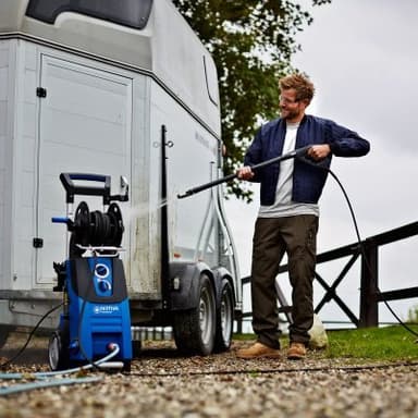 Kompakt 1-fas kallvattentvätt för lågintensiv daglig användning. Bra rengöringseffekt, professionell spolutrustning, lätt att förvara och manövrera runt med.