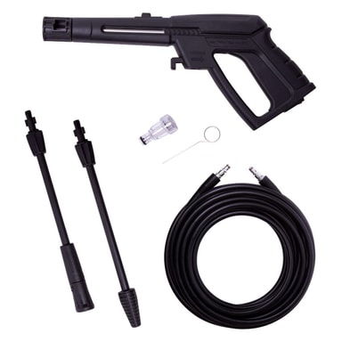 Den här högtryckstvätten levereras med en 8m lång högtrycksslang, en sprutpistol, ett justerbart munstycke, en turbolans, en trädgårdsanslutning med vattenfilter och en rengöringsnål. Tack vare den integrerade tvättmedelsbehållaren och andra medföljande tillbehör så är högtryckstvätten lämplig för mängder av olika arbeten, som tillexempel: