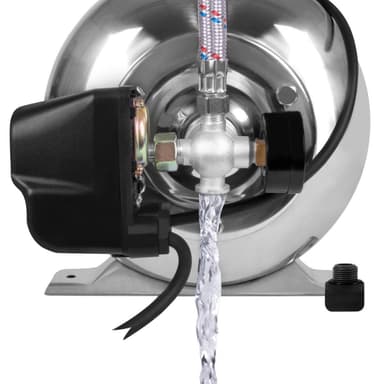 Detta hydrofor set från VONROC är lämpligt för installationer där automatisk omkoppling krävs och vatten samlas upp. Den här kraftfulla hydroforpumpen från VONROC pumpar upp till 3500 liter vatten per timme med sin effekt på 1000 W. Pumpen har en sughöjd på upp till 8 meter och kan pumpa vatten från grundvattenpulser, brunnar och dammar samt rinnande vatten från en flod eller kanal.