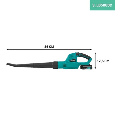 Lövblåsen är utformad för bekväm användning: lätt, ergonomisk och utrustad med ett soft-grip handtag för bekvämt grepp. Låsfunktionen gör att du enkelt kan använda maskinen och fortsätta arbeta under längre perioder utan att händerna blir trötta. Batteridriften ger fullständig rörelsefrihet, utan krångel med förlängningssladdar.