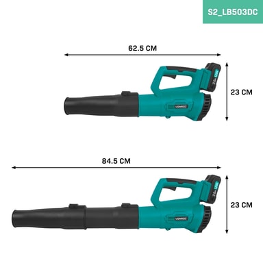 Denna lövblås levereras med 2x 2.0Ah batterier och en laddare eftersom den ingår i VONROC