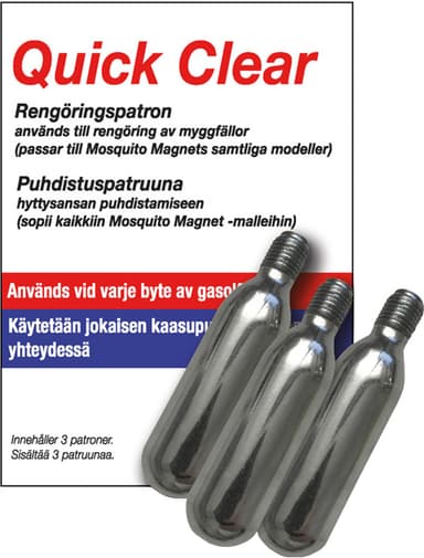 Rengör din Mosquito Magnet-maskin regelbundet med dessa rengöringspatroner. Patronerna rengör gasdiffusorn inuti maskinen och tar bort naturliga föroreningar som finns i alla gaser.Läs mer om produkten