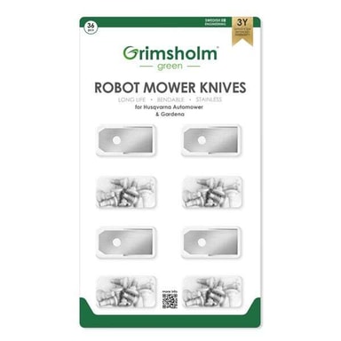 Dessa knivar från Grimsholm för Husqvarna Automower, Gardena och McCulloch är tillverkade i rostfritt stål och optimerade för att erbjuda bästa möjliga balans mellan hållfasthet, skärpa och slittålighet. Den kontrollerade härdningsprocessen säkerställer att knivarna behåller sin flexibilitet, vilket minimerar risken för avbrutna knivar om gräsklipparen kör på en sten eller annat hårt föremål.