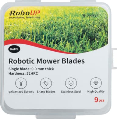 RoboUP TM01 bladsats för robotgräsklippare RU0003 kommer med en uppsättning av 9 rostfria blad och skruvar som är kompatibla med modellerna T500 och T1200 Pro. Bladen är hållbara och håller gräsklipparens prestanda upp till den standard du förväntar dig.Läs mer om produkten