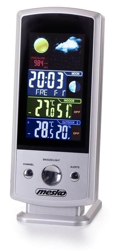 För att avläsa temperaturen ute är det vanligtvis tillräckligt att montera en vanlig termometer utanför fönstret. Det är dock värt att investera i en enhet som är lite mer avancerad och ger oss ytterligare information, vilket kan vara särskilt användbart för vår hälsa och vårt välbefinnande, även under het sommar. Den väderstation vi erbjuder är utrustad med en sond som låter dig läsa ut- och innetemperaturen. Det är intressant att kontrollera hur situationen ser ut i lägenheten, när det är varmt utanför fönstret eller vice versa, när det är frost utanför fönstret, information om lägenhetens temperatur är en signal om det inte finns några drag, lägenheten är ordentligt uppvärmd osv. Temperaturen visas både i Celsius och Fahrenheit. Dessutom visar stationen nivån på yttre och inre luftfuktighet, vilket kommer att uppskattas av allergiker. Färgdisplayen visar också trycknivån.