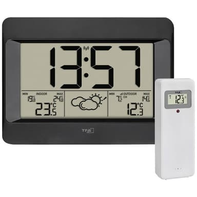 TFA Dostmann ZENO 35.1163.01 Trådlös digital väderstationTransmissionssignal: 433 MHz-radio Funktioner: Utomhustemperatur, Radio klocka (DCF77), Inställbara tidszoner, Inomhustemperatur, Max. 3 sensorer, MAX-/MIN-värde, VäderprognosLäs mer om produkten