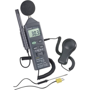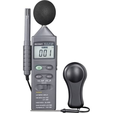 VOLTCRAFT DT 8820 Temperaturmätare -20 - +750 °C Sensortyp K Multifunktions-miljömätare 4-i-1Hållfunktion för maxvärde · Automatisk avstängning · 4-ställig display.Mätning av belysningsstyrka, ljudnivå, temperatur och luftfuktighetLäs mer om produkten
