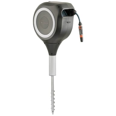 • Bekväm utdragning med spärrstopp · Tillförlitlig upprullning tack vare RollControl och inbyggd slangstyrning · Med jordspett för förankring i marken