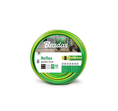 REFLEX - 5-lagers förstärkt trädgårdsslang. Tillverkad av flexibel PVC med ökat motstånd mot vattentryck.