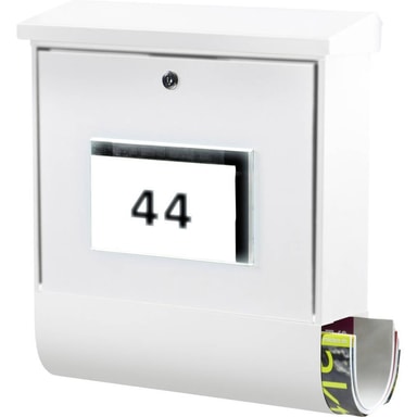 Brevlåda Burg Wächter Malaga 4400 W Stålbleck Vit Nyckel2 nycklar Cylinderlås Solcellsdrivna LED - husnummerbelysning Skymningssensor Självhäftande husnummer 1x R6-batteri (1,2 V)Fullt förzinkad · Cylinderlås med 2 nycklar. · LED-solcellsdrivenLäs mer om produkten