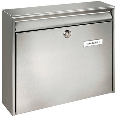 Burg Wächter 20200 BORKUM 3877 NI Brevlåda Rostfritt stål Silver NyckelFör DIN-format C4. Rostfri försegling med transparent skyddslack Av rostfritt stål Inkast (B x H): 333 x 34 mmMed infällbart inkastschakt · Med postfack · Mycket bra skydd förLäs mer om produkten