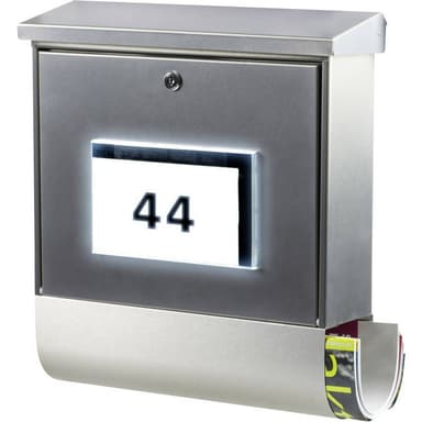 Burg Wächter 4400Si Malaga 4400 Si Brevlåda Stålbleck Silver Nyckel2 nycklar Cylinderlås Solcellsdrivna LED - husnummerbelysning Skymningssensor Självhäftande husnummer 1x R6-batteri (1,2 V)Fullt förzinkad · Cylinderlås med 2 nycklar. ·Läs mer om produkten