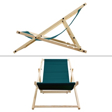 Fällbar solstol, mörkgrön, upp till 120 kg, av trä med 3 liggplatser