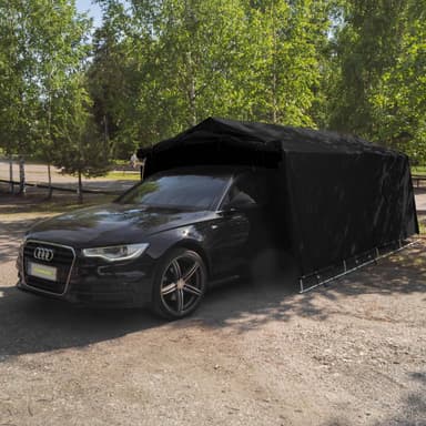 Fornorths Garagetält 3,2x6m i svart PVC-tyg med galvaniserat stålrör är enkelt att montera och perfekt för att skydda din bil eller utrustning.Läs mer om produkten