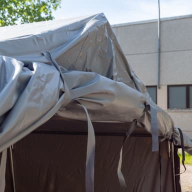 Ett lättmonterat garagetält i ljusgrått PVC-tyg med galvaniserad stålrörsram för att skydda och förvara din bil eller utrustning på ett bekvämt sätt.Läs mer om produkten