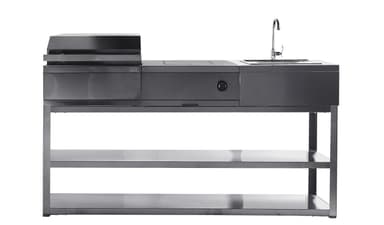 Visby presenteras i rak linje - med stilfull svart utformning i nordisk minimalistisk design, tillverkat i beständigt material av rostfritt stål. Den inkluderade utrustningen ger dig möjligheten att laga mat, förvara och servera på ett enkelt och snyggt sätt. Undertill har du tillgång till rymlig hyllförvaring med möjlighet att förvara dina grillverktyg, grytor eller stekpannor. Ett praktiskt utekök som låter dig tillaga alla måltider utomhus!