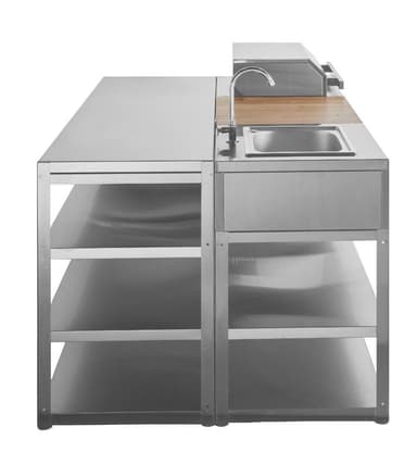 En rejäl arbetsbänk för dig som önskar fritt utrymme när du lagar mat utomhus. Rostfri arbetsbänk i stilren och öppen design med 3 användbara hyllplan.Läs mer om produkten