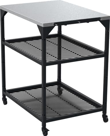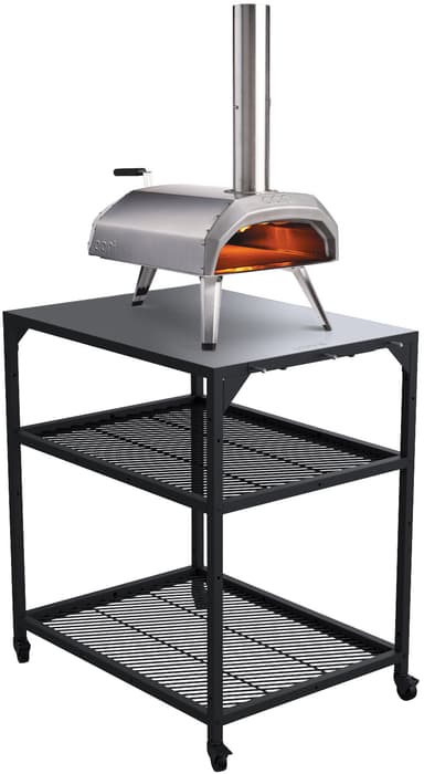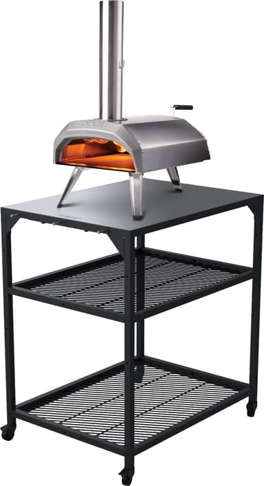 Ooni Modular pizzabord UU-P2F000 är ett hållbart utomhusställ för förberedelse och servering av pizza. Det är tillverkat av pulverlackerat kolstål och har två hyllor och krokar för förvaring av tillbehör som pizzapaddlar och serveringsskedar.Läs mer om produkten