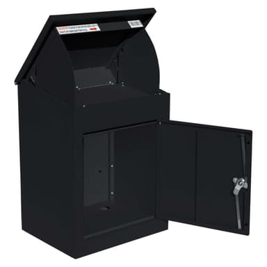 Denna säkra paketpostlåda är tillverkad av 1,3 mm tjockt galvaniserat stål för att bilda en stark struktur och är toppad med en hållbar pulverlackering för att ge den en fantastisk svart finish som är extremt väderbeständig. För att förbättra de vattentäta egenskaperna har postlådan ett sluttande tak som låter vatten rinna av och håller dina leveranser torra.