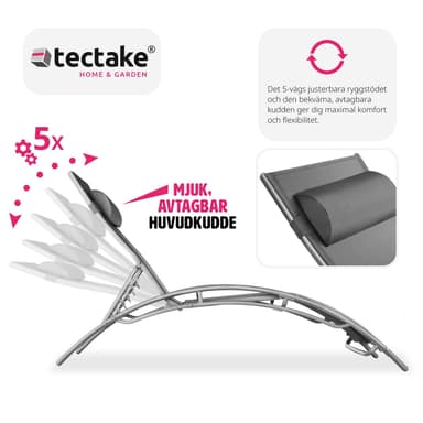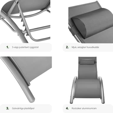För att säkerställa maximal komfort kan ryggstödet justeras i fem olika positioner. Oavsett om du vill läsa en bok, sola eller ta en tupplur, kan du enkelt hitta den perfekta vinkeln som passar dina behov. Den högsta inställningen är idealisk för att läsa tidningar eller böcker, medan den lägsta inställningen hjälper dig att slappna av och kanske till och med somna.
