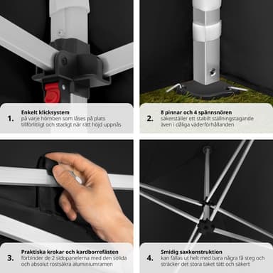 Paviljongen bör inte användas eller stå ute i händelse av kraftiga vindar eller liknande väderförhållanden, som kan skada den.