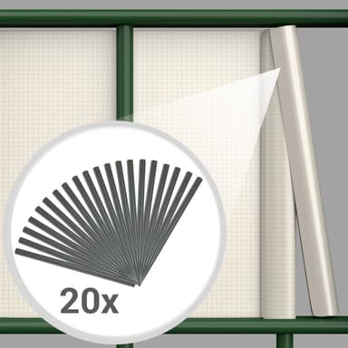 Detta mångsidiga och högkvalitativa insynsskydd i folie har många finesser att erbjuda. Oavsett om den används som skydd från sol, vind, insyn eller som bullerskydd. Passar alla vanliga enkel- och dubbeltrådstängsel. Folien är enkel att fästa i en handvändning. Vid behov kan folien enkelt rengöras med en trädgårdsslang. Våra inskyddsskyddsremsor har dubbelsidigt tryck, är UV-beständiga och lågreflekterande. Ett dubbelsidigt ytskikt förhindrar blekning av färgen. Trä helt enkelt vårt insynsskydd genom trådarna på stängslet och fixera den i ändarna med de medföljande fästklämmorna. köp hem Insynsskydd från Tectake.