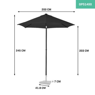 Vi erbjuder även parasoll och parasollfot som ett komplett set! Kolla in Parasoll Torbole - Ø200cm – Premium parasoll - Antricit/Svart – Inkl. Parasollfot 20Kg (GP514XX_C)