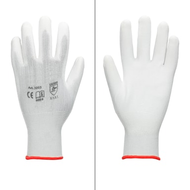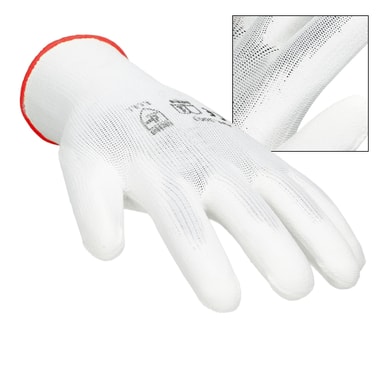 Omfattning av leverans: 4 x par mekaniker handskar PU Vit DIN 7-S Egenskaper: Första klass, tunn beläggning av polyuretaner av handflatan och fingrarna Färg vit Tillbaka är obestruket och mycket andas Finstickad nylon särskilt halkfriLäs mer om produkten