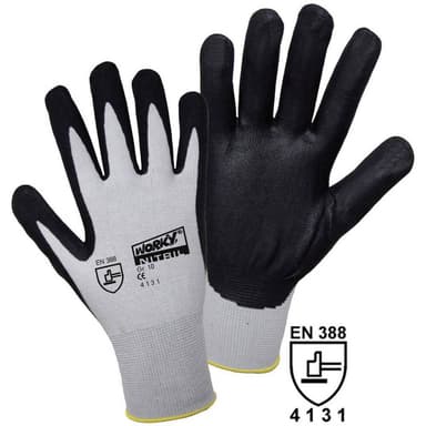 Nylon Arbetshandske Storlek (handskar): 10, XL EN 388 CAT II L+D worky FOAM Nylon NITRILE 1158-10 1 parAv 100 % grått nylon · Sömlös · Extremt lätt och andningsaktiv · Utvecklad för verksamhet som kräver särskild kompetens, sensibilitet ochLäs mer om produkten