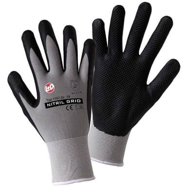Nylon Arbetshandske Storlek (handskar): 10, XL EN 388:2016 CAT II L+D worky NITRIL GRID 1167-10 1 parTillverkad av 100% grått nylon · Seamless · Med svart, skummad nitril med Nitrilgitter · Vattenavvisande · Okänslig för smuts på grund av sin mörkaLäs mer om produkten