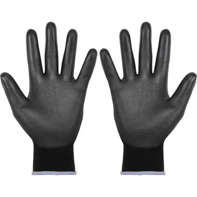 • Skyddshandske i polyamidBekvämaMed PU-beläggningBra känsla genom handsken