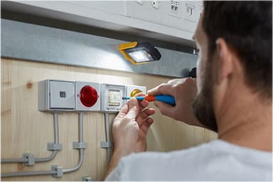 Brennenstuhl SMD-LED Universal Lamp HL DB43 MH, 4xSMD-LED, 3xCREE-LED, 200/20lm, drivs med 3xAAA batteries(inkluderade), integrerad magnet, svart/orangeLäs mer om produkten
