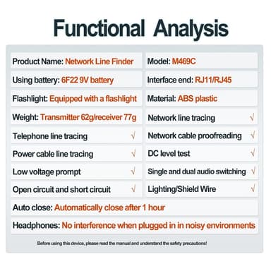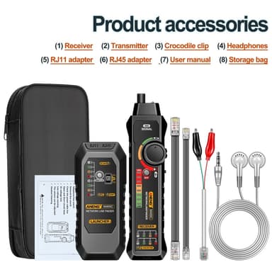 ANENG Nätverkskabeltestare Nätverks Ethernet Wire Tracker Kabelsökare - SvartKorrekturläsning av nätverkskabel: Sätt i RJ45-nätverkskabeln i sändar- och mottagargränssnittet, och sändaren trycker på ""Align""-knappen.Läs mer om produkten