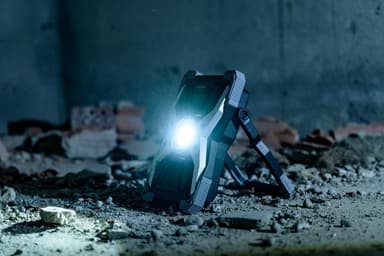 Strålkastaren har ett inbyggt uppladdningsbart batteri som har en laddningstid på cirka 5 timmar. Under laddningsprocessen kan strålkastaren fortsätta att lysa. Integrerad i lampan är också en funktion som tillåter en dimbarhet på 10% - 25% - 50% - 75% - 100%. De inbyggda lysdioderna imponerar med sin exceptionellt långa livslängd och sin speciella ljusspridning på stora ytor. Byggstrålkastaren laddas via medföljande laddkabel. Den har också följande imponerande funktioner: