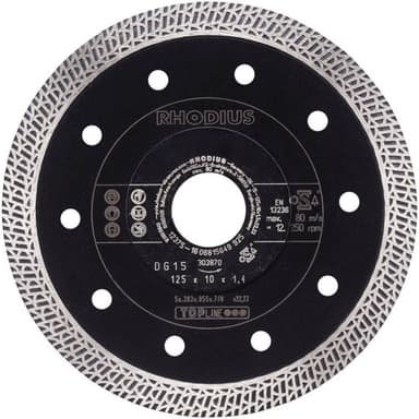 Diamantkapskiva Rhodius 303870 Diameter 125 mm 1 st10 mm höjd segment · Låg dammutveckling · Optimerad diamant bindning för hårda kakel, keramik och stengods · Förstärkt stålkärna garanterar en exakt snitt och en ren snitt kant · 1,4 mm segmentbreddLäs mer om produkten