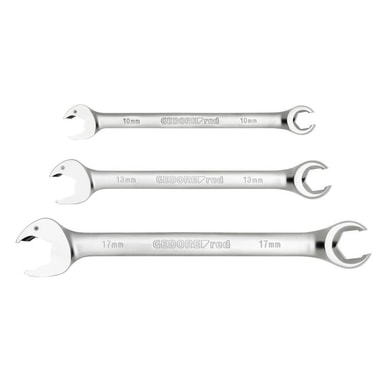 Dubbel spärrnyckel set Gedore RED R05905004 3300032Enligt din 3113, ISO 3318 · Mulla med spärrskaftsfunktion · Käftställning 15° · Ringsida öppen, 15° vinklad · Matt-satinerad yta · Kromvanadinstål · I hållareLäs mer om produkten